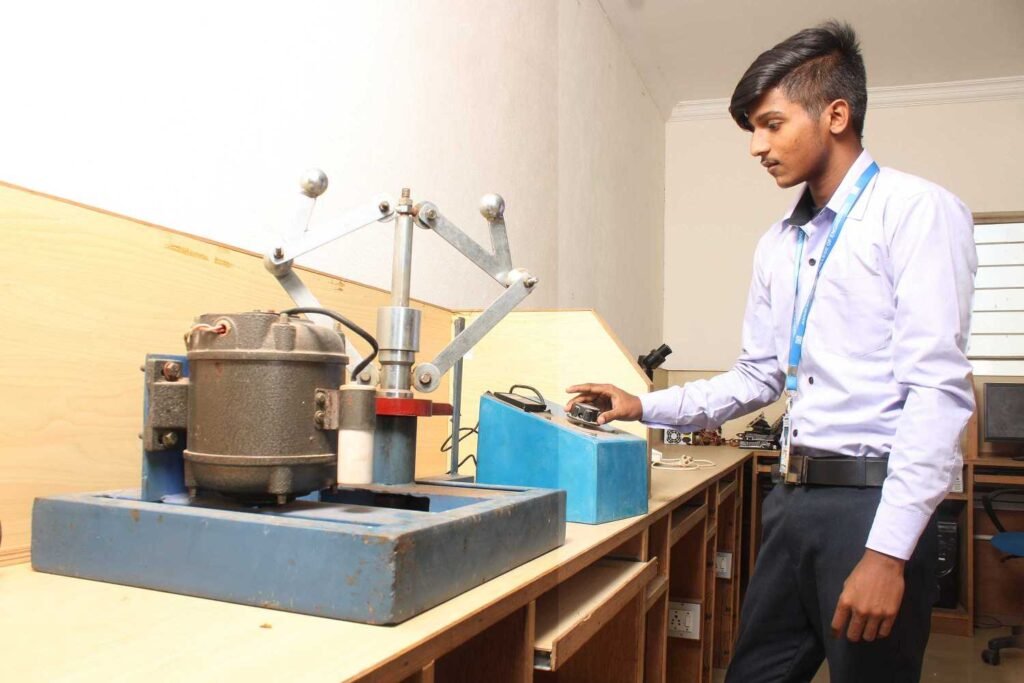 To impart practical knowledge on design and analysis of mechanisms in the machine tools and automobiles. In Machine Dynamics Lab, the students are doing the experiments related to their theory subjects like Engineering Mechanics, Machines and Mechanisms and Fundamentals of Vibration and Noise. Various equipments like governors, gyroscopes, balancing machines and universal vibration facilities are available to understand machine dynamics.