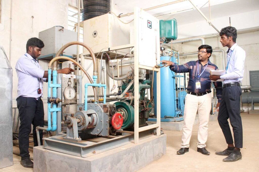 The laboratory is established with all types of modern equipments like Diesel engines with various loads, Petrol Engines with various loads, Air Conditioning unit, Air compressor, Boiler, Refrigeration unit and various Heat Transfer Equipments.